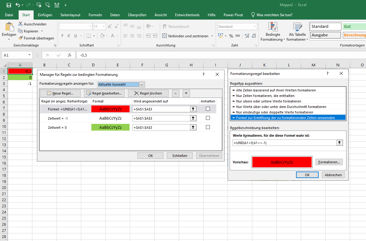 Formel : ='Tabelle2'!$M$531=0 soll grün / ='Tabelle2'!$M$531=-1 soll weis / ='Tabelle2'!$M$5310 soll rot