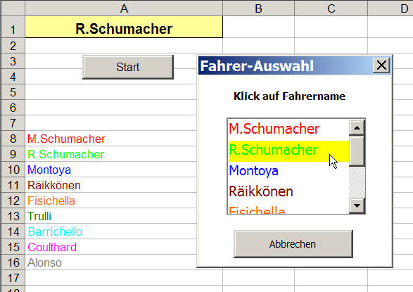 AW: Combobox Formatübernahme 06.06.2007 14:37:00 Luschi Hallo Schmadlowski, wenn Du soetwas meinst, http://www.excel-werkstatt.de/downloads/farbige%20Listbox.jpg - dann schau mal bei Paulchen's Excel-Werkstatt vorbei: http://www.excel-werkstatt.de/index.php?site=download/download&kat=14&anzeigedl=21 Gruß von Luschi aus klein-Paris Anzeige