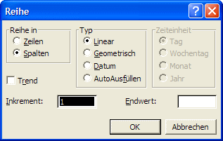Inkrement können Sie festlegen, in welchen Schritten Excel den Bereich ausfüllen soll. Wählen Sie z.B. als Inkrement