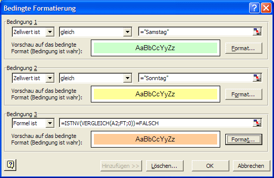 Im nachfolgenden Beispiel werden Samstage und Sonntage einer Datumsliste farblich markiert. Gehen Sie wie folgt vor: